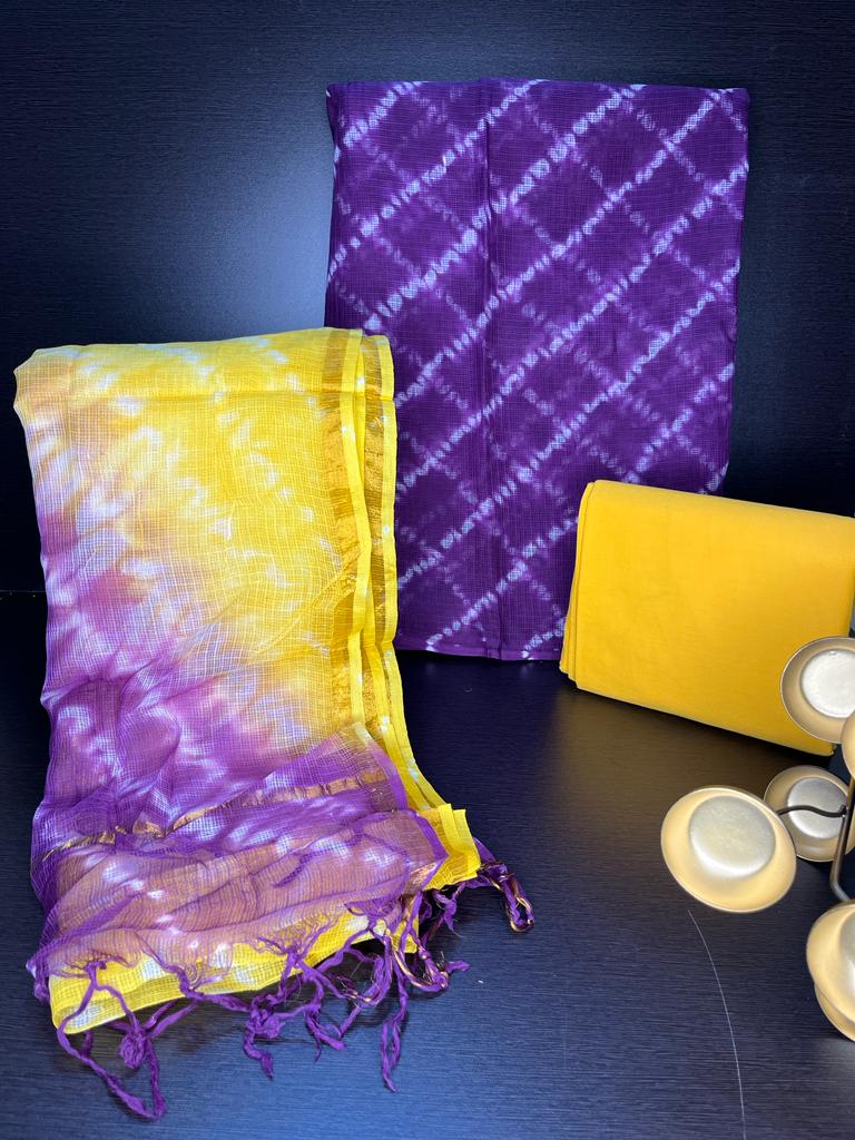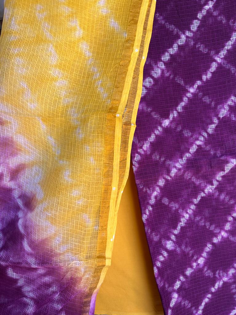 Premium quality shibori print kota unstitched dress material for all your formal & casual needs. Make your dress beautiful with this Pure Kota Doriya dupatta.