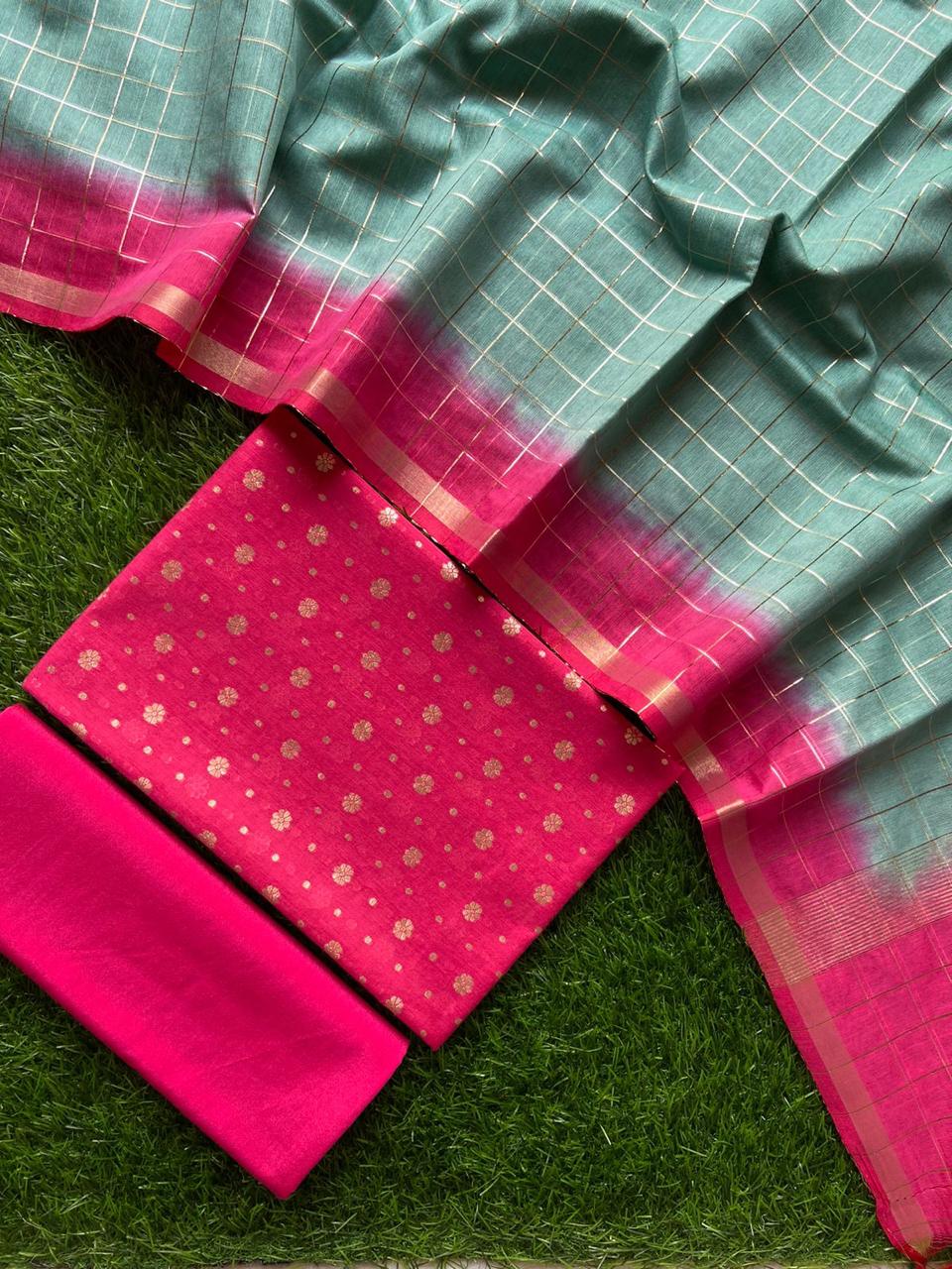 - Malai Chanderi Lurex Checks Duptta = 2.5 Meters