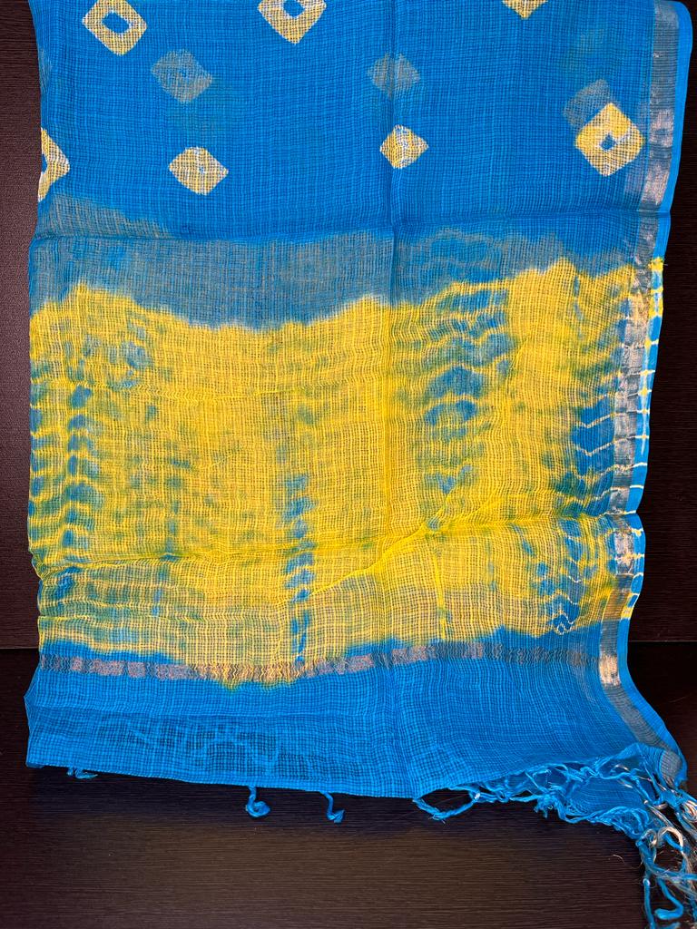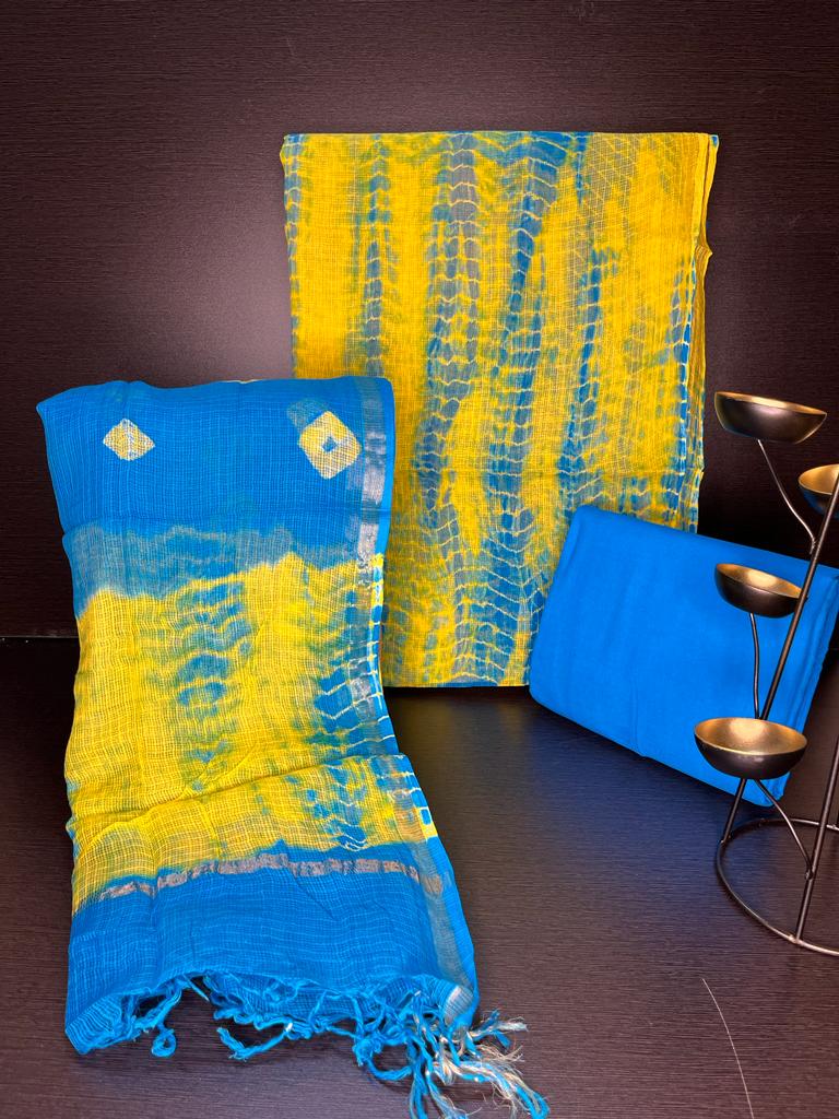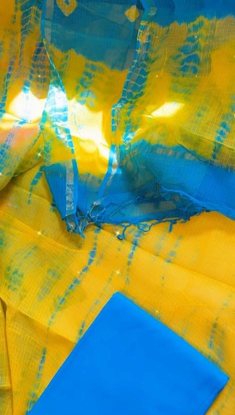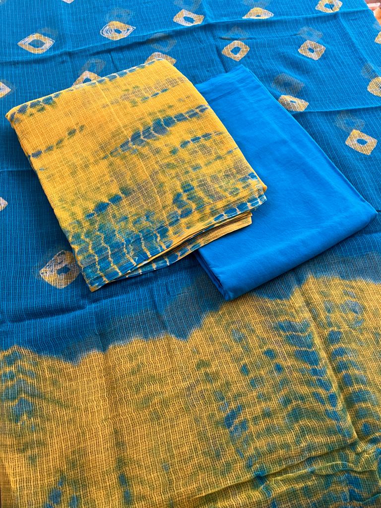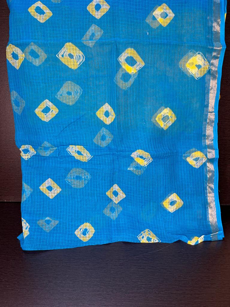 Premium quality shibori print kota unstitched dress material for all your formal & casual needs. Make your dress beautiful with this Pure Kota Doriya dupatta.