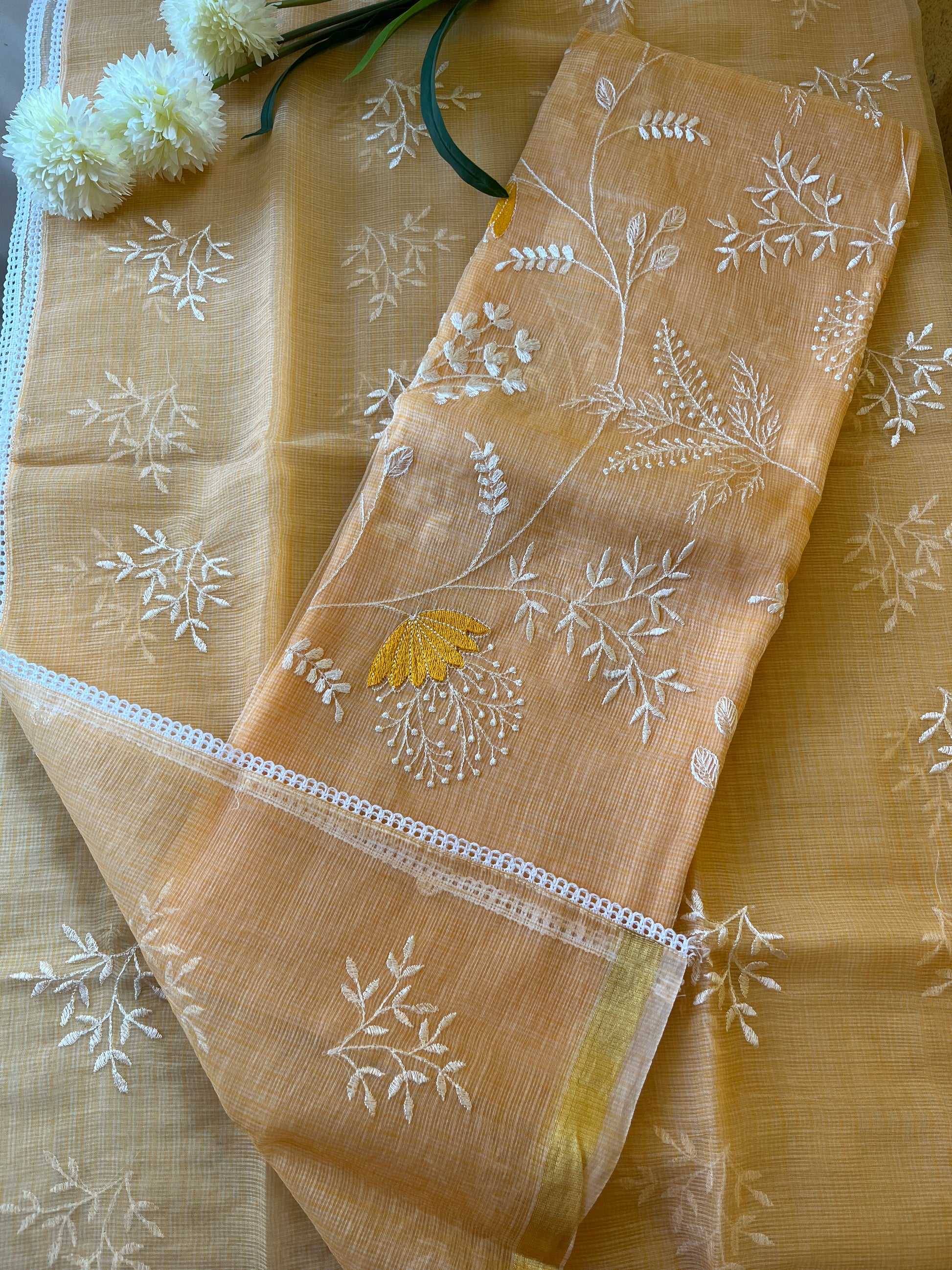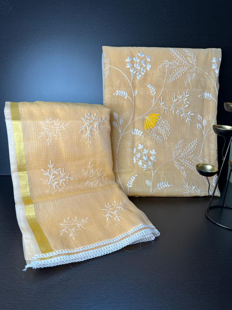 Premium quality kota unstitched dress material for all your formal & casual needs. Make your dress beautiful with this embroidered work dupatta.