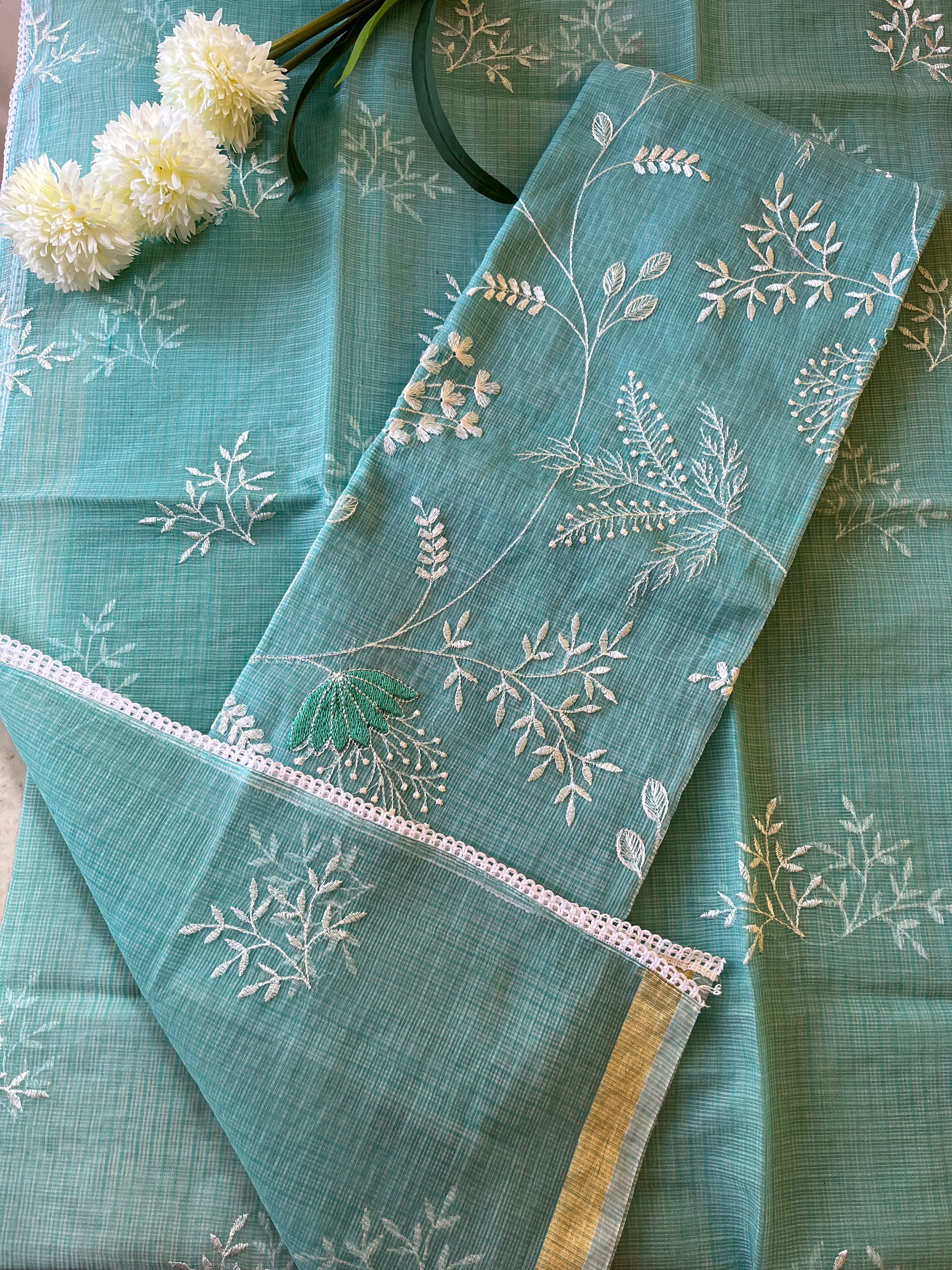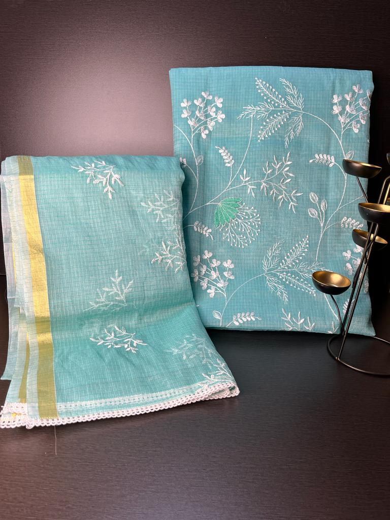 Premium quality kota unstitched dress material for all your formal & casual needs. Make your dress beautiful with this embroidered work dupatta.