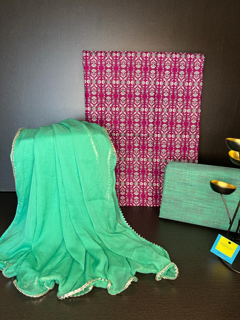 Premium quality cotton unstitched dress material for all your formal & casual needs. Make your dress beautiful with this chiffon dupatta.
