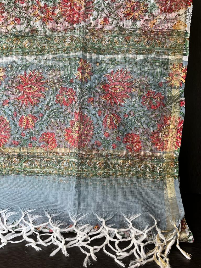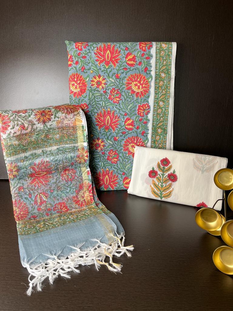 Premium quality hand block cotton unstitched dress material for all your formal & casual needs. Make your dress beautiful with this Pura Kota Doriya dupatta.