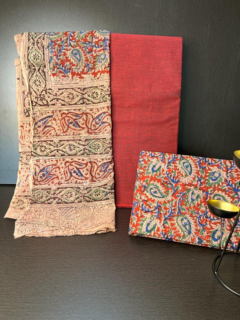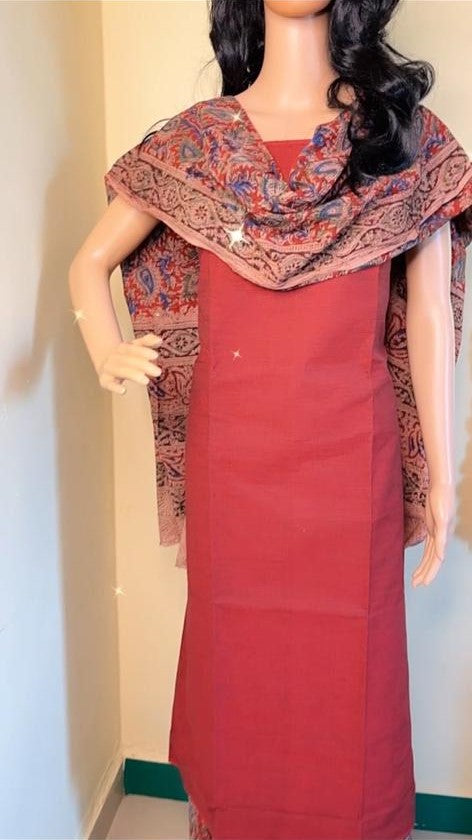 Premium quality kalamkari print cotton unstitched dress material for all your formal & casual needs. Make your dress beautiful with this kalmkari cotton dupatta.